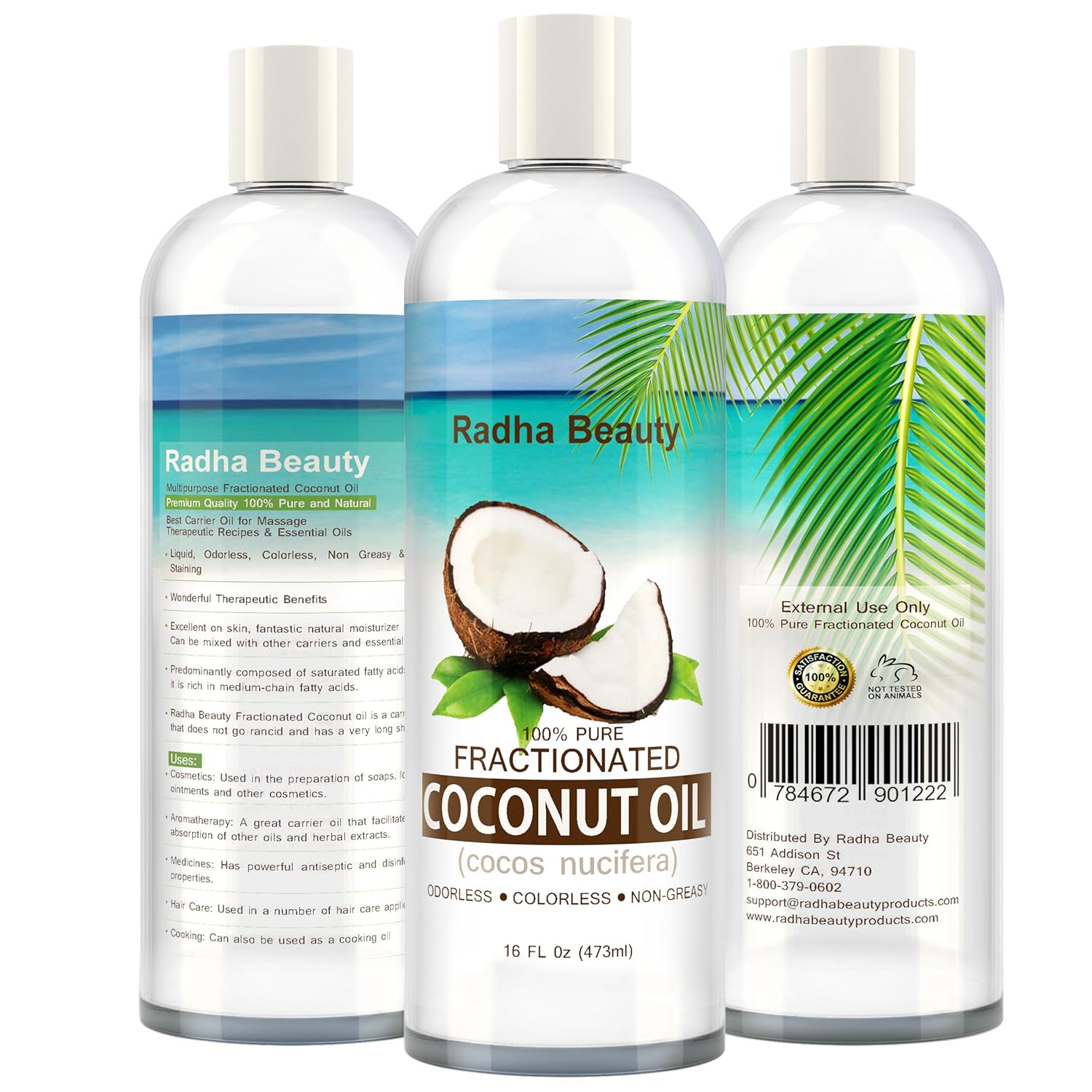 Okay, let's get down to the nitty gritty. This product is a 16 oz bottle of 100% pure and natural coconut oil. It can be used for aromatherapy and for massage oil, and it does not feel greasy. It is an amazing product to use for beauty purposes. I like to put coconut oil on my lips at night to keep them moisturized (especially during the cold months) and I like to mix it in with my lotions to help secure the moisture in. And this product is odorless (which is kinda difficult to find in coconut oil) so it's great when you have an AWESOME smelling lotion and you can mix this in and it doesn't mess with the smell. This coconut oil is also great to put into a spray bottle and spray your hair with once or twice a week to add to your hair health (maybe before you go to bed as it can weigh your hair down if you're looking for volume) and it will help with growth and shine and overall health!! If you want some extra moisture all around you can actually add it to your bubble bath. There is really just A LOT you can do with coconut oil. Especially the Radha beauty product brand, because it's top quality and you can always expect the best!!!